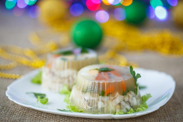 Il pesce in gelatina è uno spuntino davvero festoso che molte persone associano al nuovo anno. Questo piatto porta sempre un sorriso ai russi, perché era presente nella popolare commedia sovietica di Capodanno “L’ironia del destino, o Enjoy Your Bath!”, che in Russia va mostrato ogni anno 31 dicembre.