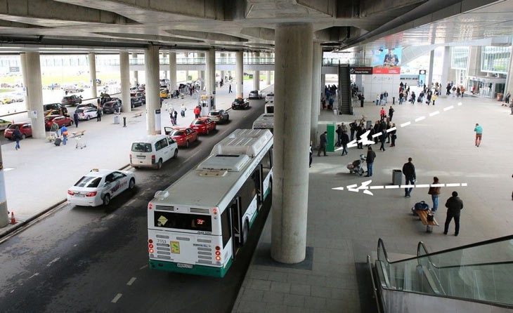 La fermata dell’autobus 39 e dell’autobus express “Э” 39 si trova al livello inferiore del terminal di fronte all’uscita degli arrivi.