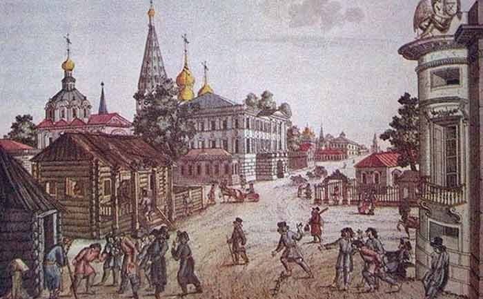 La situazione a Mosca della metà del XVIII secolo contribuì anche alla diffusione della mortale malattia: spazzatura e immondizie non venivano asportate, ma gettate nelle strade e sgrondate nei ruscelli e fiumi.