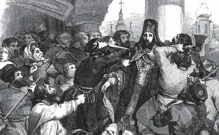 Il giorno dopo, più persone ribelli uscirono per le strade di Mosca. Alcuni di loro si spostarono verso il monastero Donskoy, presso il quale si rifugiò l’arcivescovo. Dopo che il monastero fu preso d’assalto, la folla trovò Ambrogio e lo uccise brutalmente.
