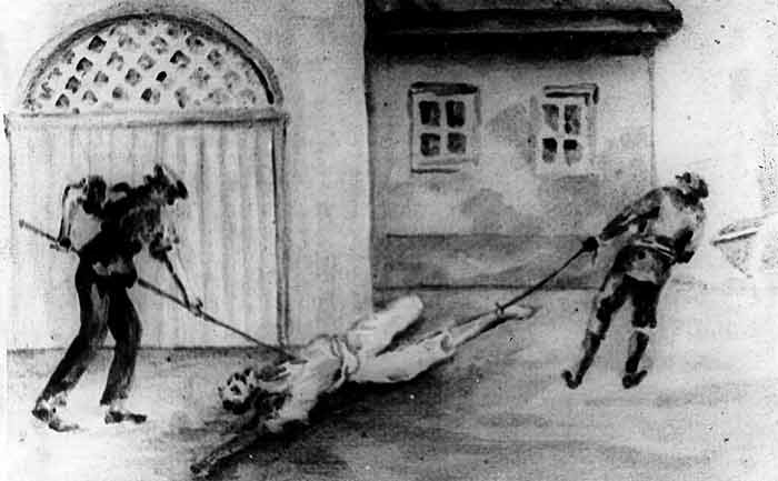 Gli effetti personali dei morti di peste furono bruciati. Questo lavoro fu affidato ai mortus (dal latino mortuus), i detenuti vestiti in abiti impregnati di catrame con buchi per gli occhi e la bocca, raccoglievano i morti con ganci speciali.