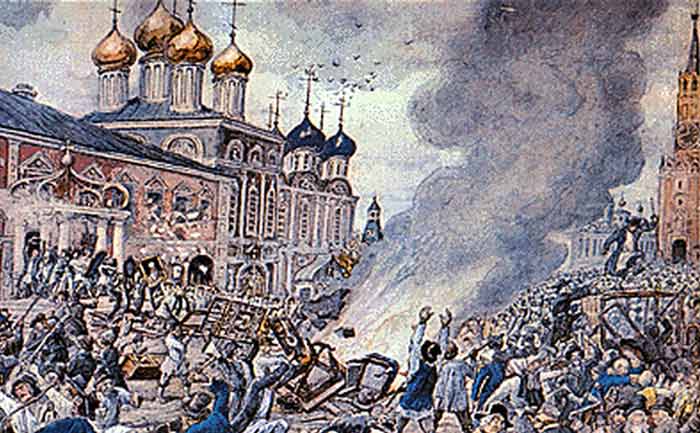 A Mosca regnava il panico, i cadaveri giacevano per le strade. La polizia non aveva abbastanza mezzi di trasporto per l’asportazione dei malati e dei morti. Tra la popolazione che soffriva di peste, fame, disoccupazione, apparvero appelli alla ribellione.